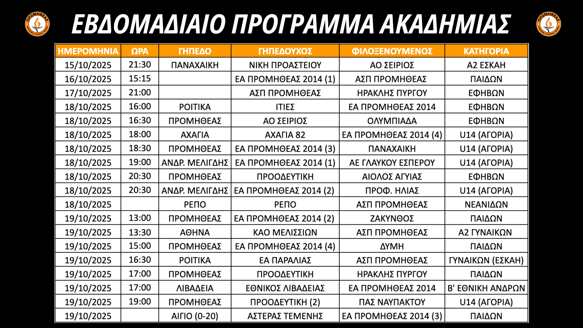ΠΡΟΓΡΑΜΜΑ ΑΓΩΝΩΝ
